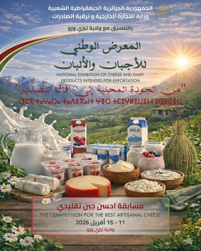 Organisé en coordination avec la wilaya de Tizi Ouzou, ce salon vise à valoriser la qualité locale des fromages et produits laitiers algériens et à ouvrir de nouvelles perspectives pour leur exportation vers les marchés étrangers, en mettant en avant les capacités de production nationale, en encourageant l’innovation dans le domaine de la transformation du lait et en soutenant les producteurs pour accéder aux circuits d’exportation, contribuant ainsi au renforcement de la compétitivité des produits algériens, précise le communiqué.