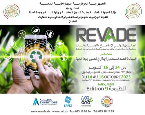La 9e édition du Salon international de la récupération et de la valorisation des déchets « REVADE » se tiendra du 25 au 27 octobre courant au Palais des expositions (Pins maritimes-Alger), a indiqué, mercredi, un communiqué de la Chambre algérienne de commerce et d’industrie (CACI), organisatrice de la manifestation, en collaboration avec l’Agence nationale des déchets (AND).